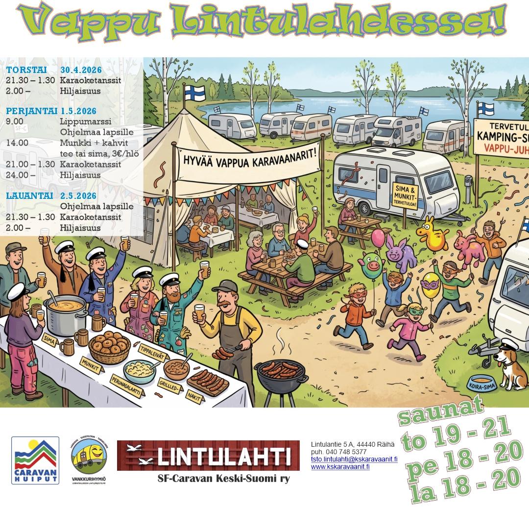 SF-Caravan Keski-Suomi ry:n sääntömääräinen kevätkokous pidetään Hietasaaren Pavilla, os. Hietasaarentie 128, 41240 Kyynämöinen, sunnuntaina 26.4.2026 klo 12.00 alkaen.