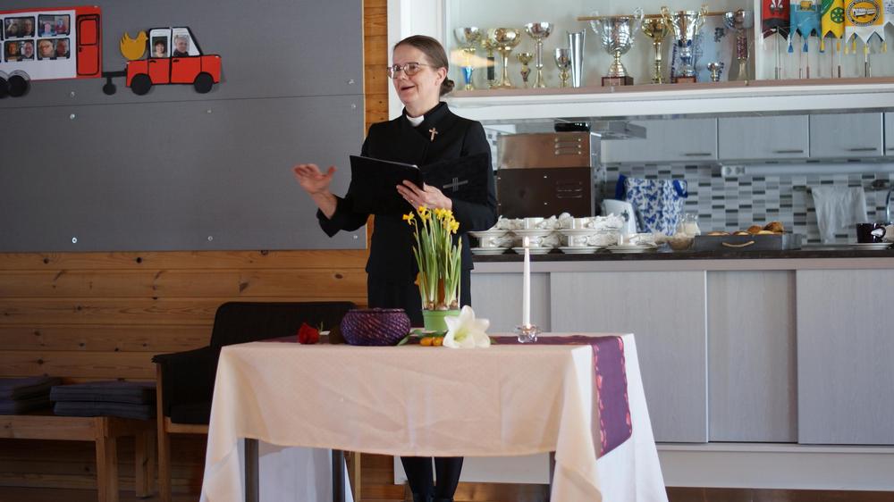Pääsiäistä juhlimaan saapui kuutisenkymmentä henkeä. Piha oli hieman sohjoinen ja märkä, mutta ei se pahemmin haitannut. Pitkäperjantain hartaustilaisuuteen pääsiäissanomaa ja lauluja toivat kirkkoherra Elina Tourunen ja seurakuntamuusikko Tommi Kurtti Äänekosken seurakunnasta. Hartauskahvit juotiin Marjan rahkapullien kanssa. Ennen saunoja vietettiin vielä yhteislauluhetki Heikin vetämänä. Maijan mielenkiintoinen kuvasuunnistus veti väkeä jatkuen lauantaihin asti.
