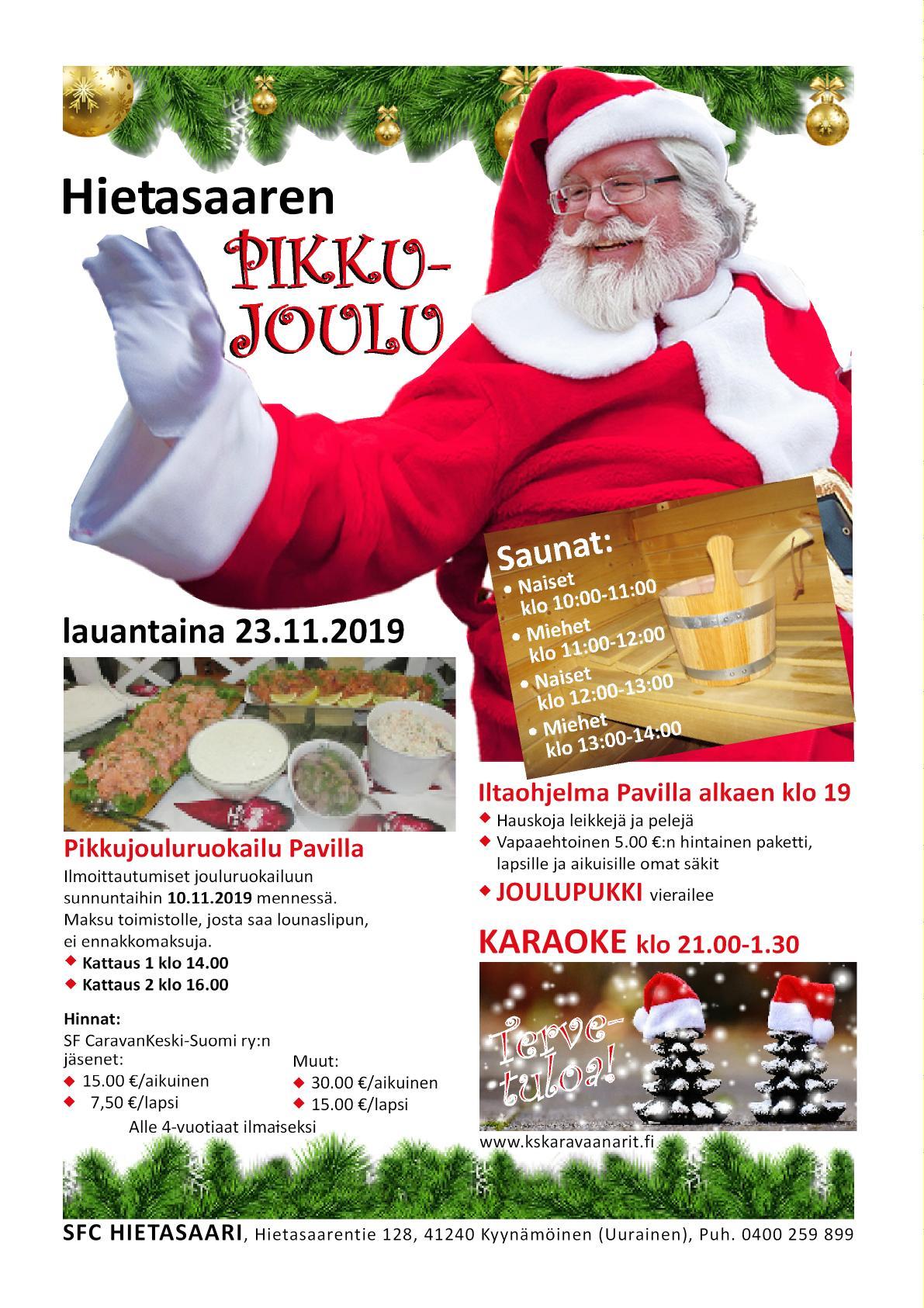 Pikkujoulut HUOM! Ilmoittautumiset jouluruokailuun perjantaihin 15.11.2019 mennessä.